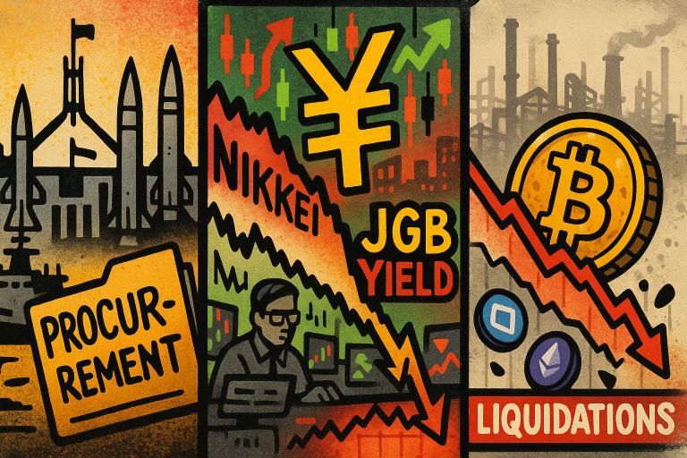 Australia, Asia and global macro sentiment opened the week on a cautious footing, with defence restructuring in Canberra, volatile equity moves across regional markets, renewed pressure in digital assets, and fresh signs of slowing momentum in China’s manufacturing sector.